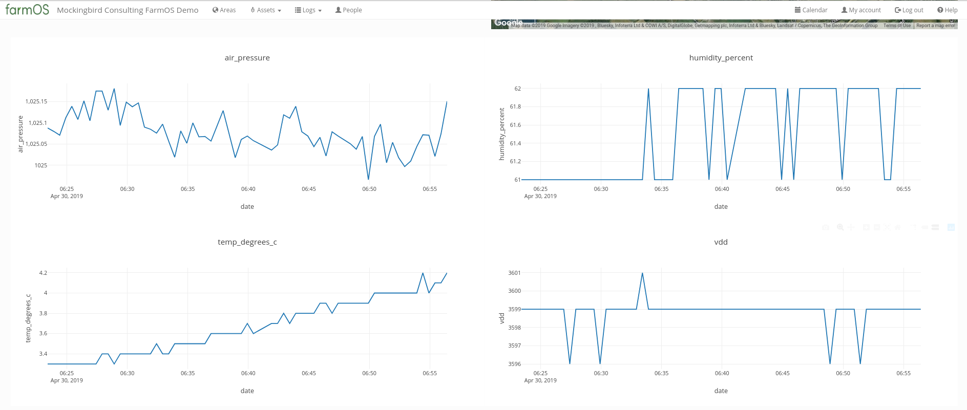 | [01:59:56] | <MockingbirdConsu> | Finally got it all working - as long as the name in the LoRaServer.io control panel matches the sensor name in FarmOS, then the metrics will automatically get added as they roll in. |